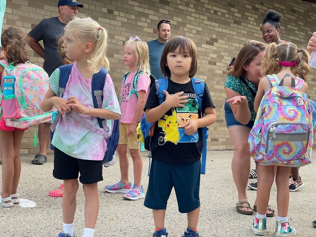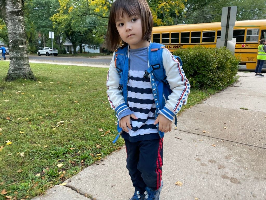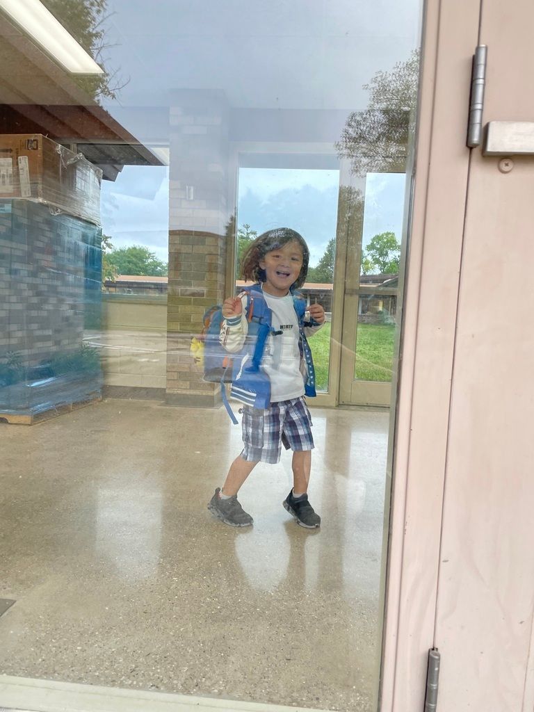 His first day was actually last week, but he refused to try.  This time still took some pressure to get him in the classroom, but once he joined the other kids he loved every second.