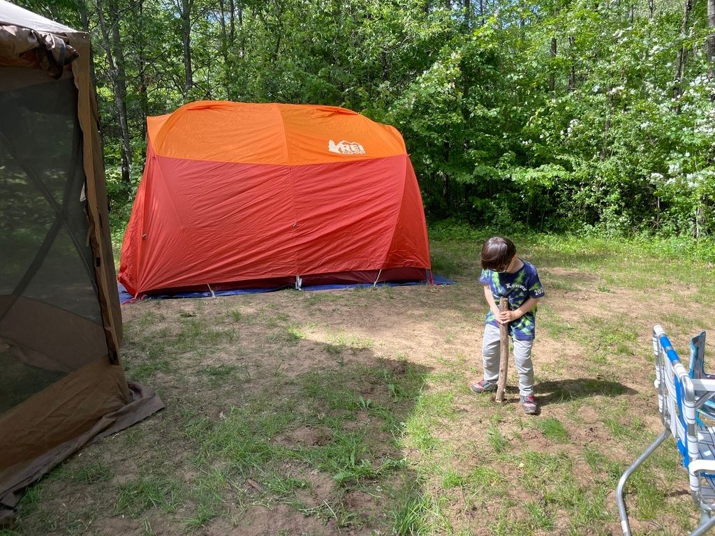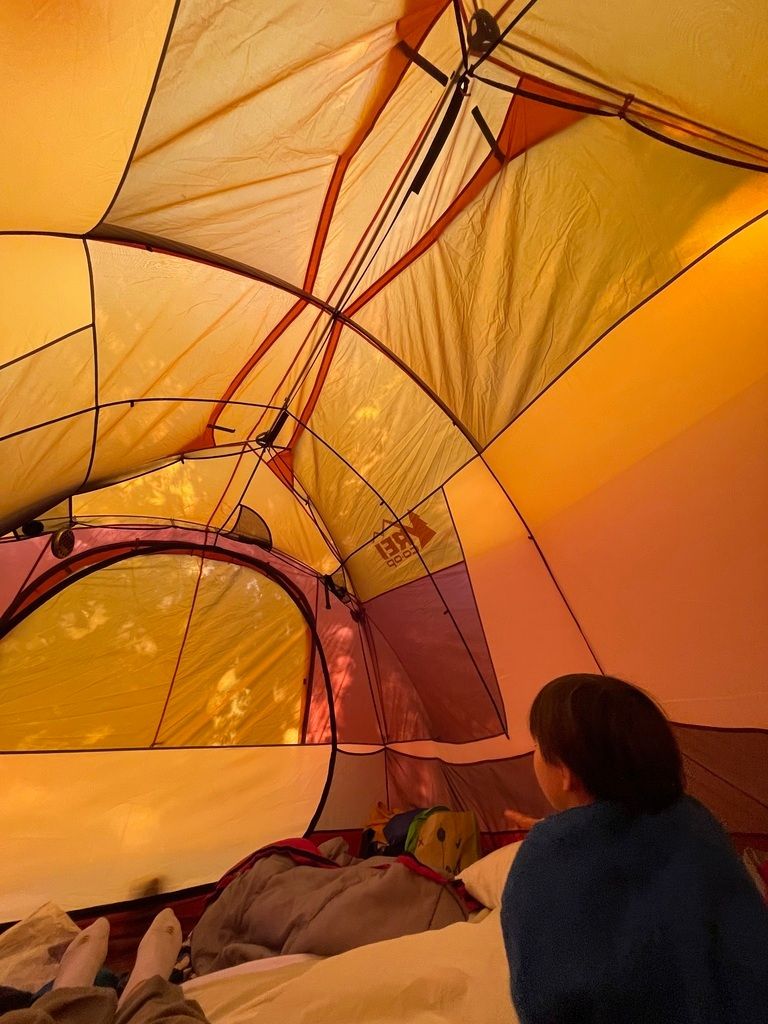 Taking a mosquito break in the tent.