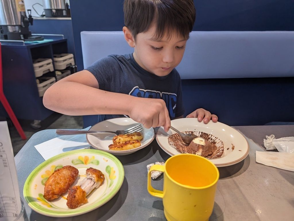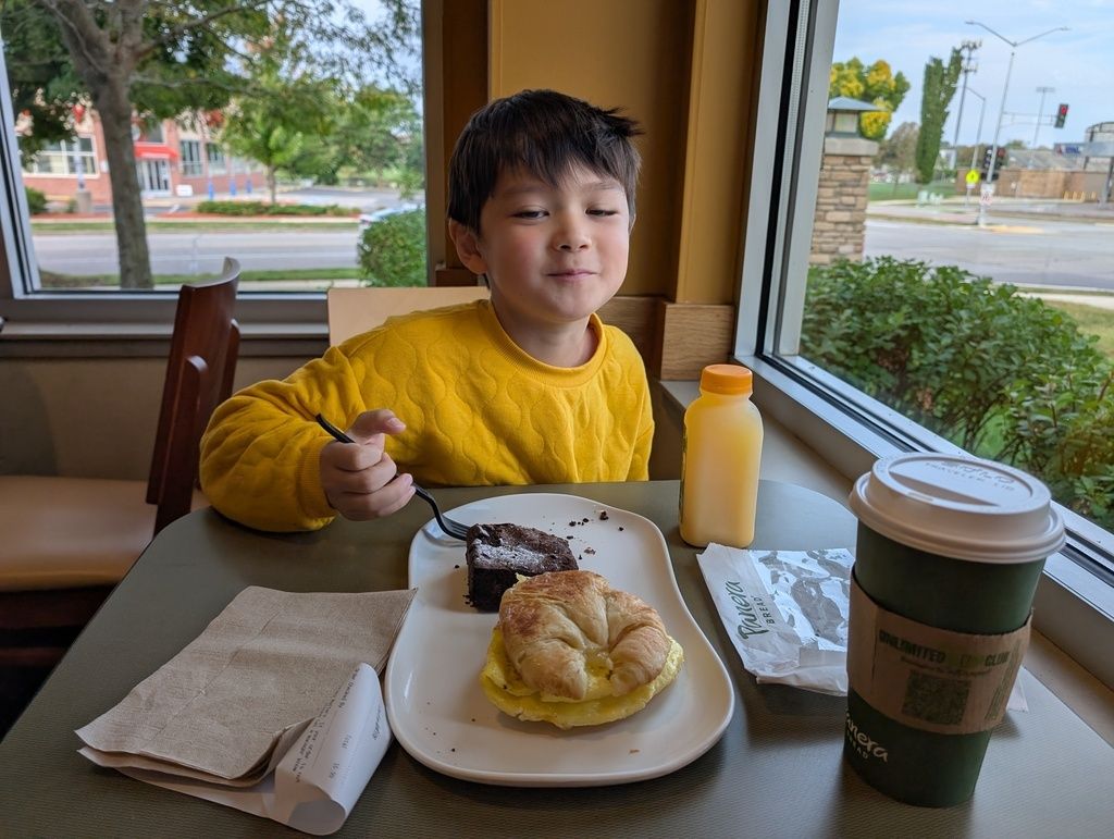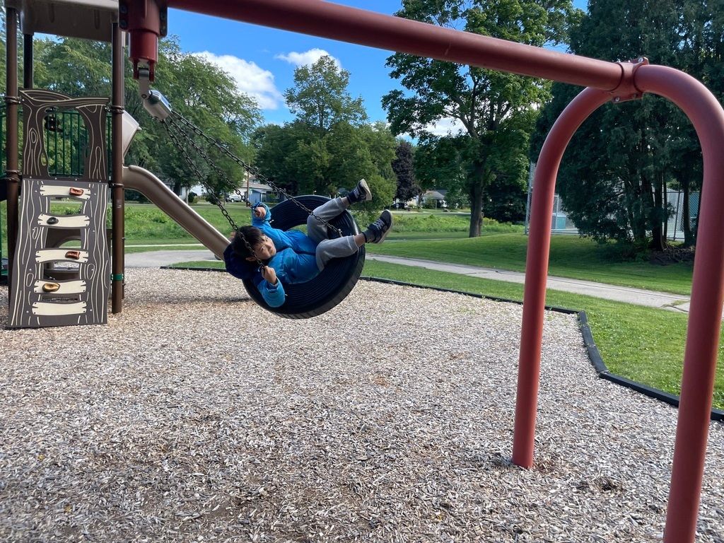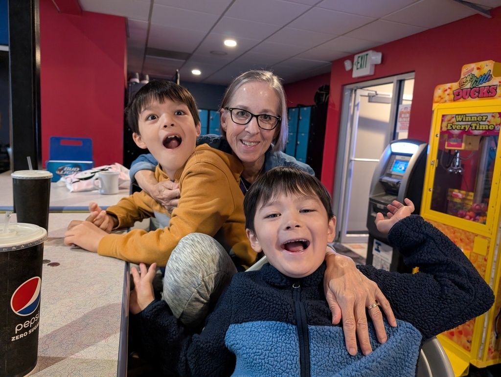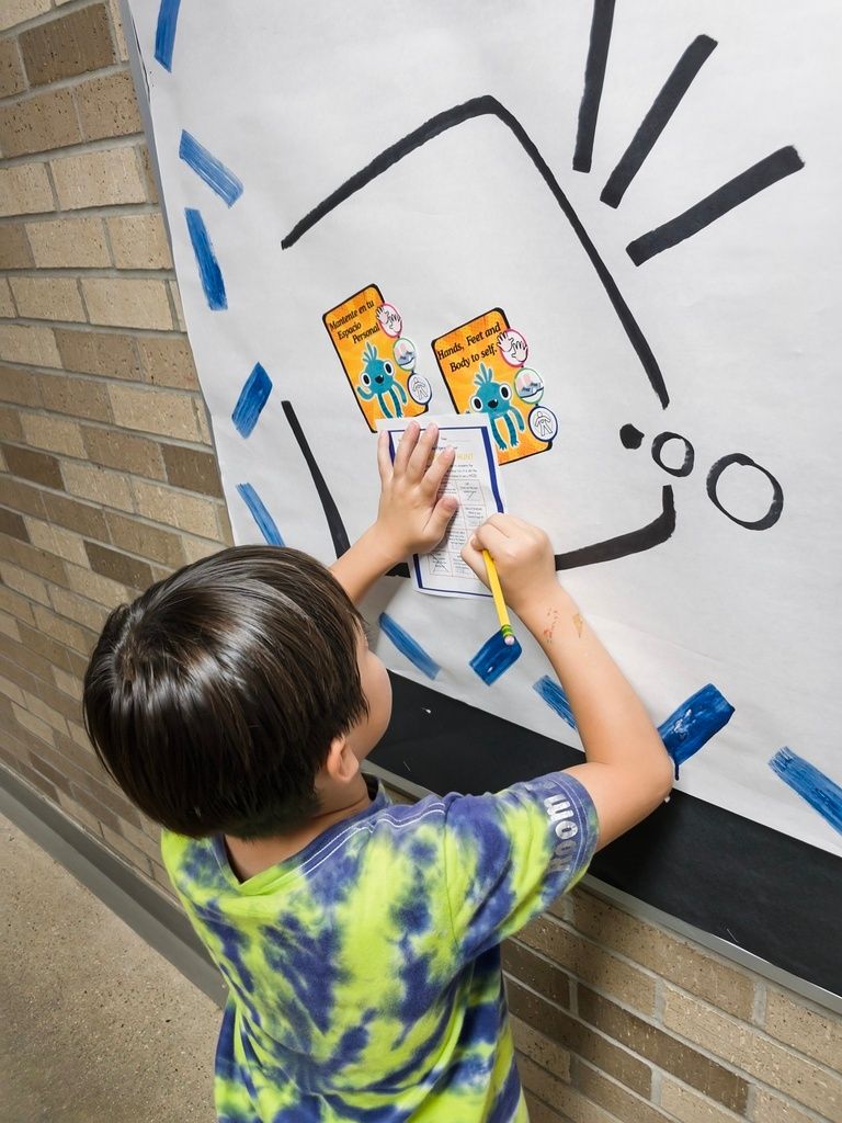 Filling out a scavenger hunt sheet to unlock access to the popsicle stand at the school open house.