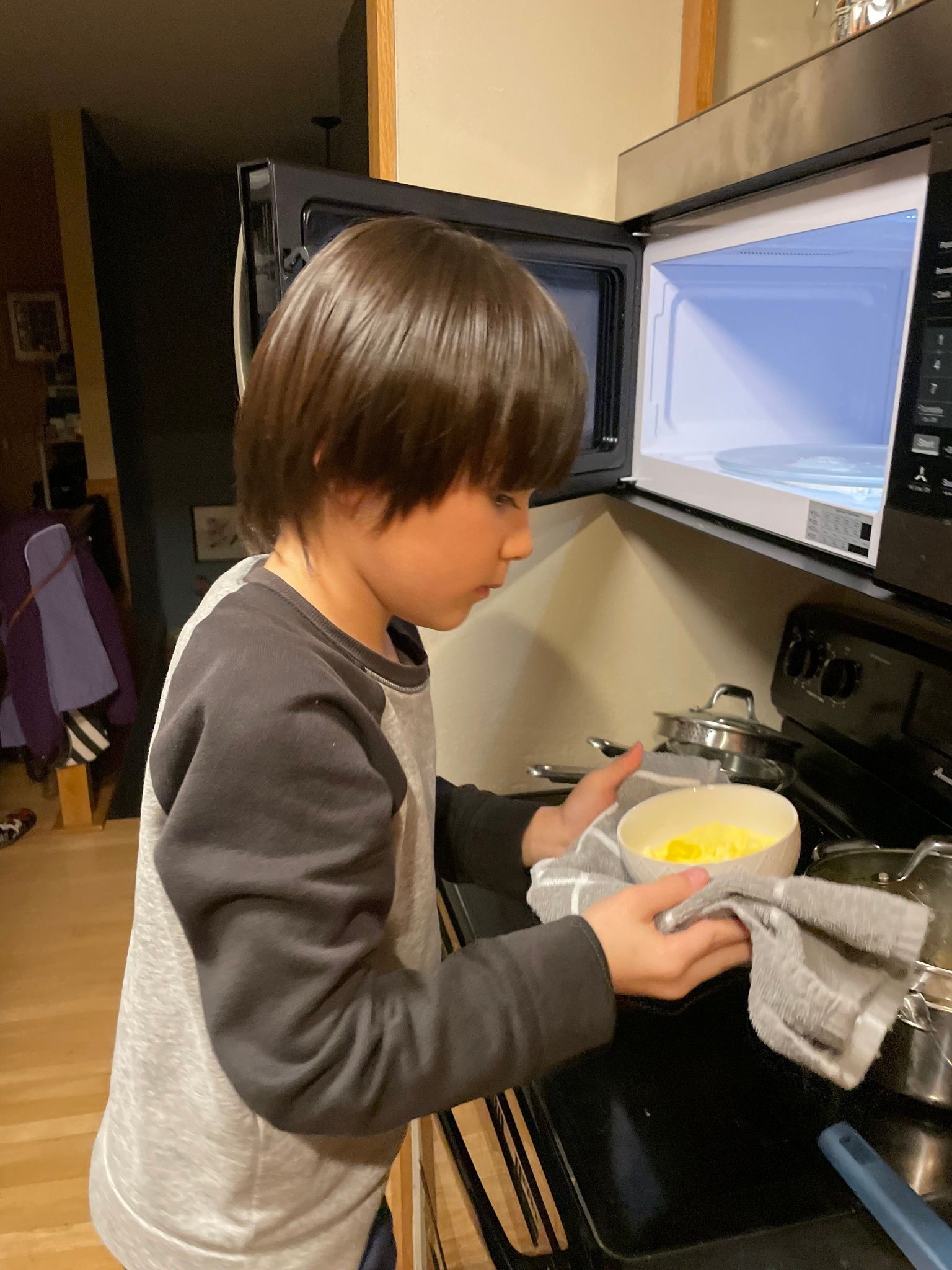 Kenny makes himself an egg.